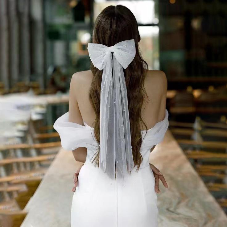 Свадебная фата Белая бабочка Свадебное украшение Жемчужная фата Элегантный тюлевый слой Заколка для волос Невеста Свадебный бант Фата Заколка для волос Тюлевая короткая фата Аксессуары для волос