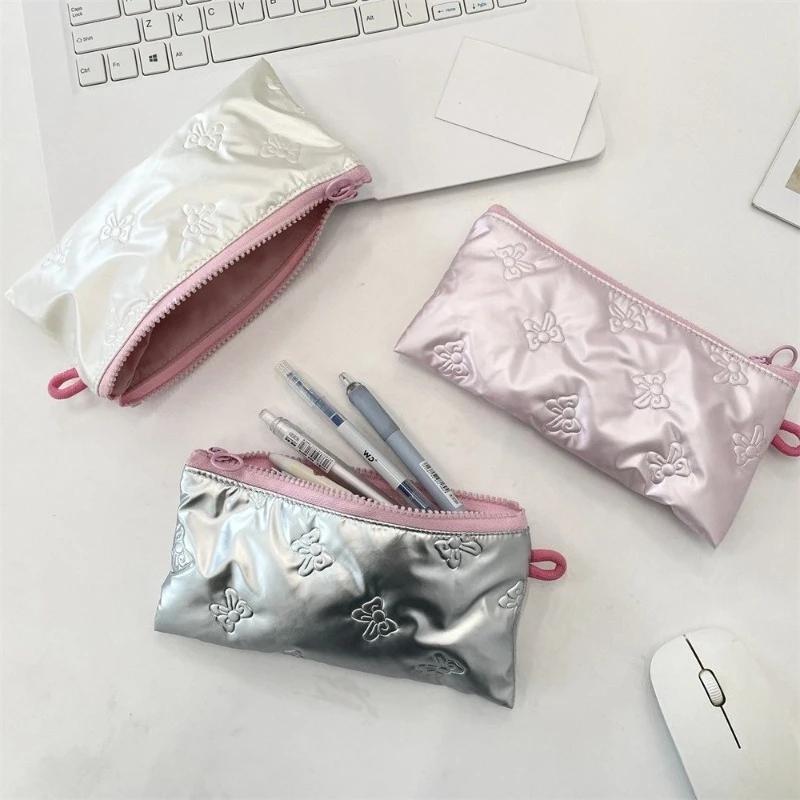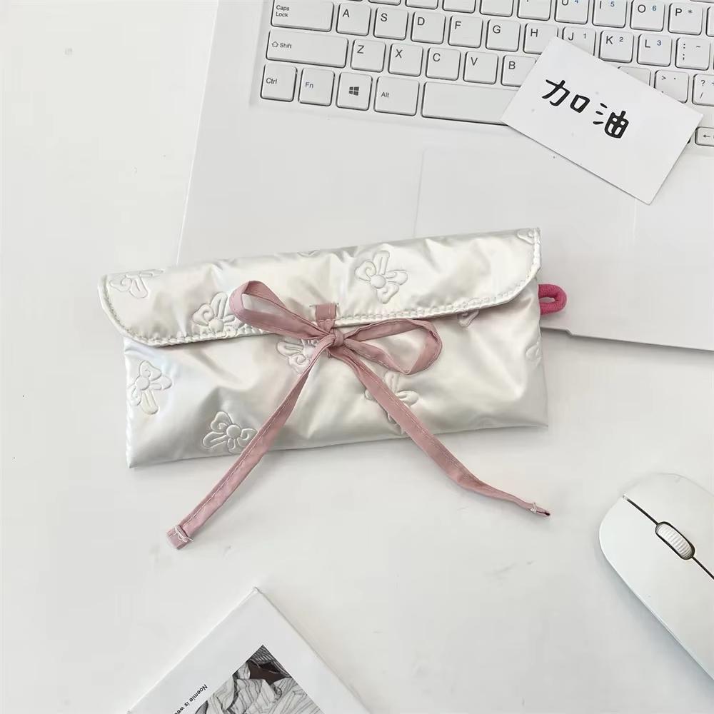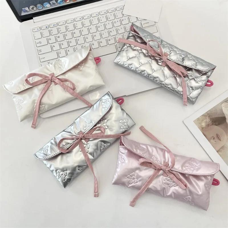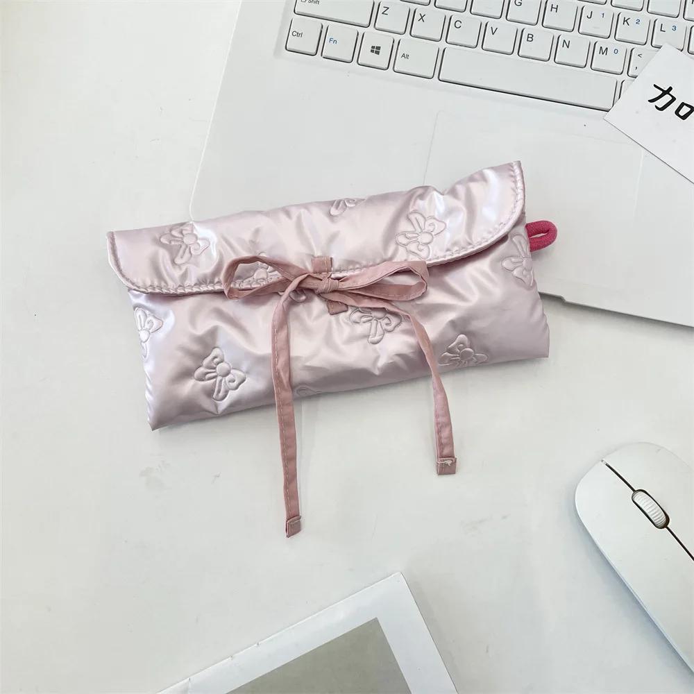Многофункциональная сумка для ручек из искусственной кожи, большой вместимости, с принтом в виде бантика, студенческий пенал, органайзер для хранения канцелярских принадлежностей
