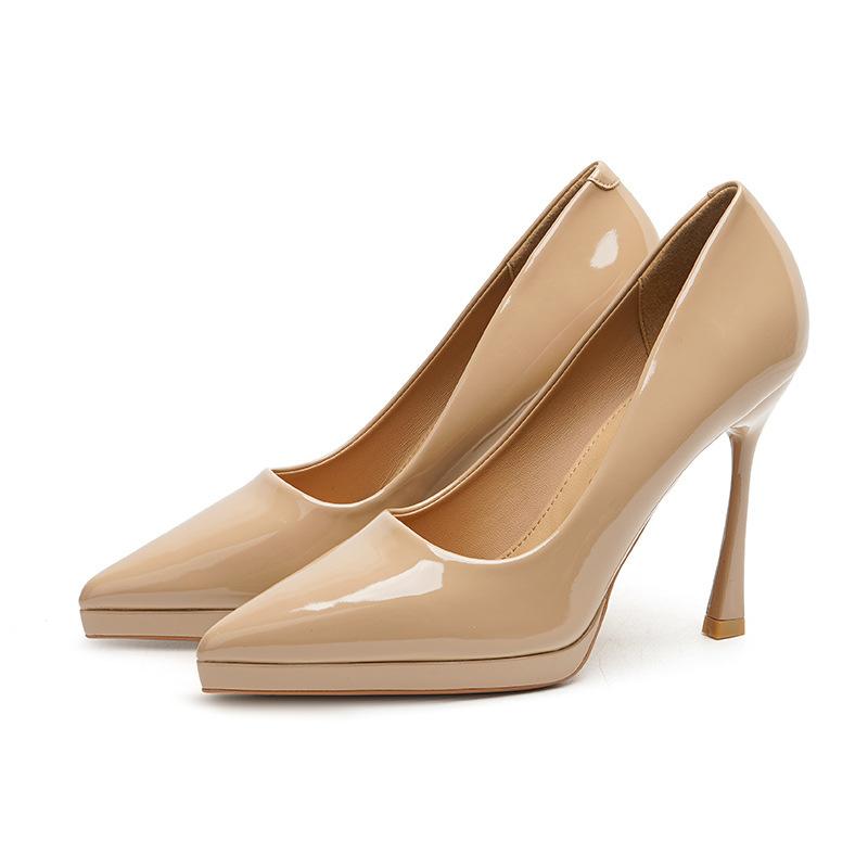 16-1 Однотонные лаковые туфли, сексуальный супервысокий каблук, водонепроницаемая платформа, женская обувь, новые остроносые туфли на тонком каблуке, высокие каблуки