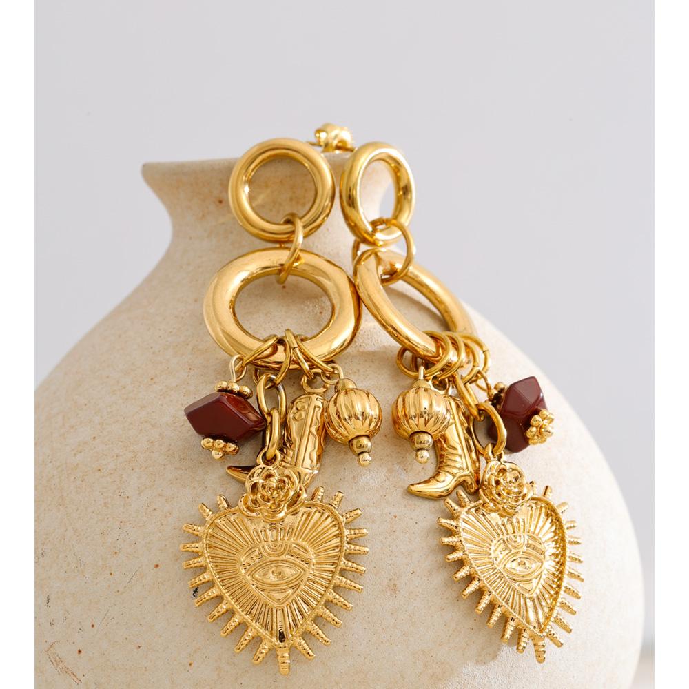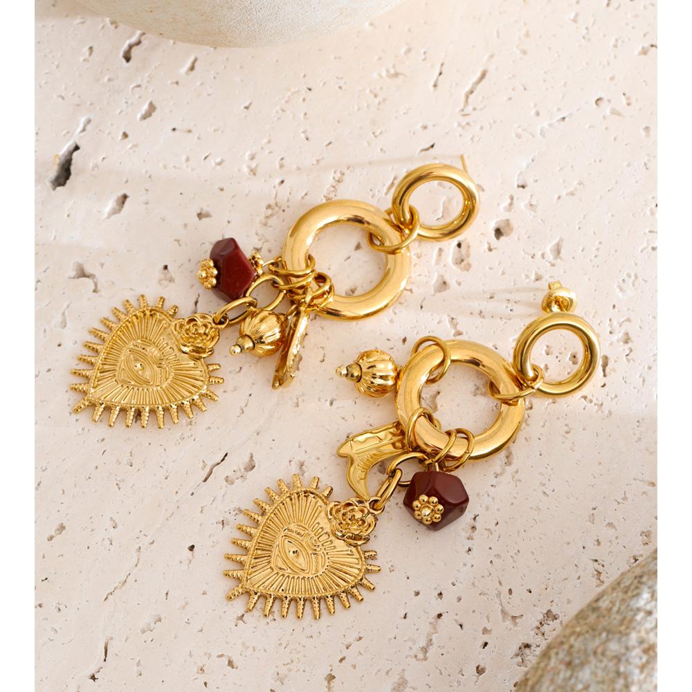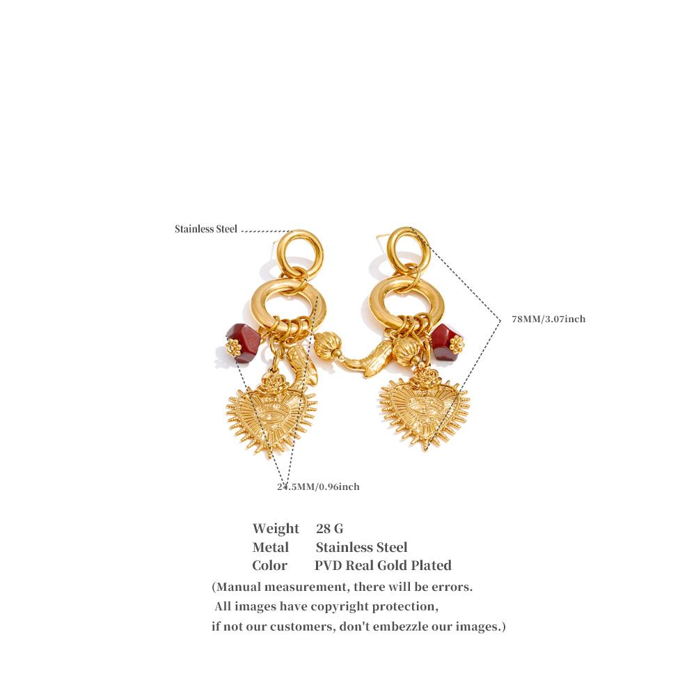 Eetit Модные серьги-подвески в форме сердца из нержавеющей стали с покрытием из 18-каратного золота PVD, винтажные, длинные, эффектные.