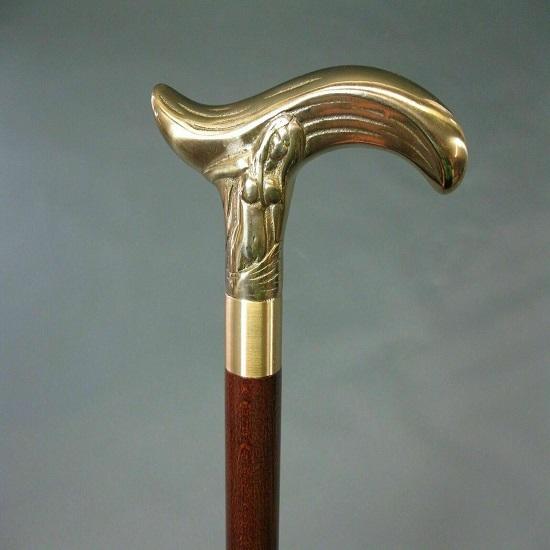 Дизайнерская трость, латунная позолоченная ручка, трость в старинном стиле, деревянная рукоятка, средство передвижения, элегантный аксессуар, стильная трость, подарок для него, подарок для нее, аксессуар к официальному наряду, функциональная трость, классический дизайн трости, ручная работа, трость для поддержания устойчивости, универсальное средство для ходьбы, изысканная идея для подарка.