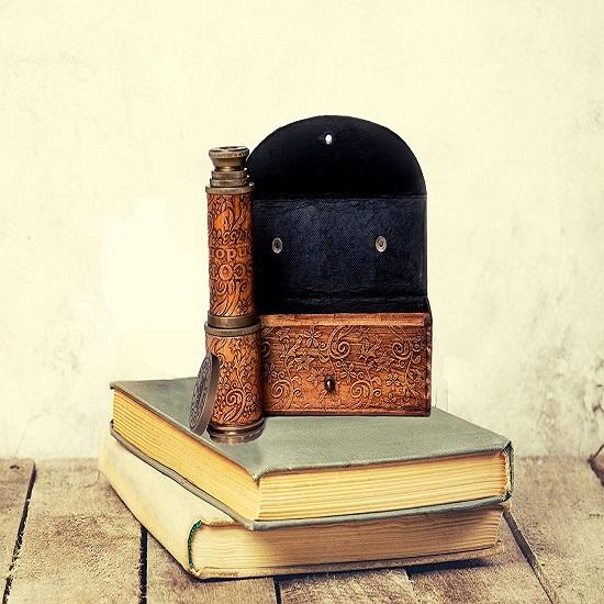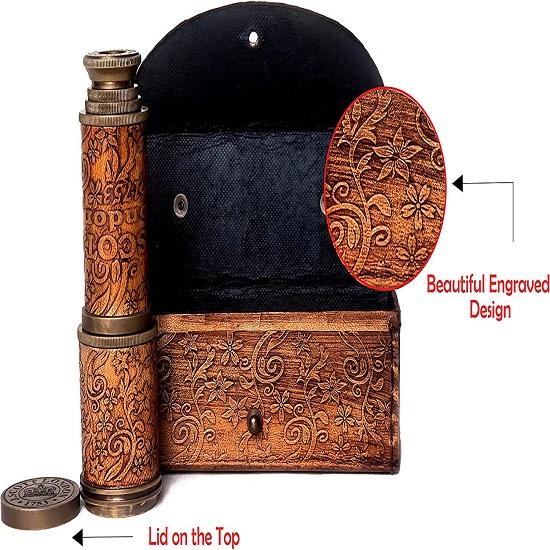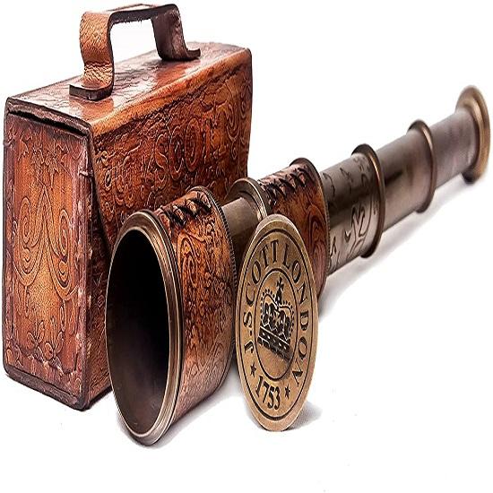 ПРОДУКТ ПРЕМИУМ КАЧЕСТВА: Уникальный дизайн из цельной латуни с блестящей бронзовой отделкой и резным кожаным футляром. Его историческая бронзовая отделка делает его похожим на настоящий винтажный телескоп.. Для фокусировки на удаленных объектах используется механизм толкания и вытягивания.. Его нужно полностью вытащить и медленно проталкивать внутрь, глядя в зрительную трубу, пока нужный объект не станет четким.
