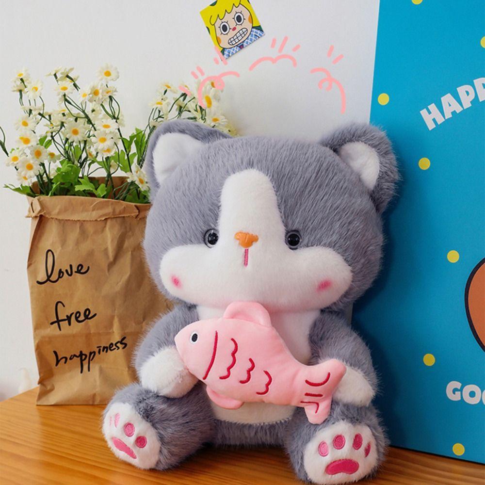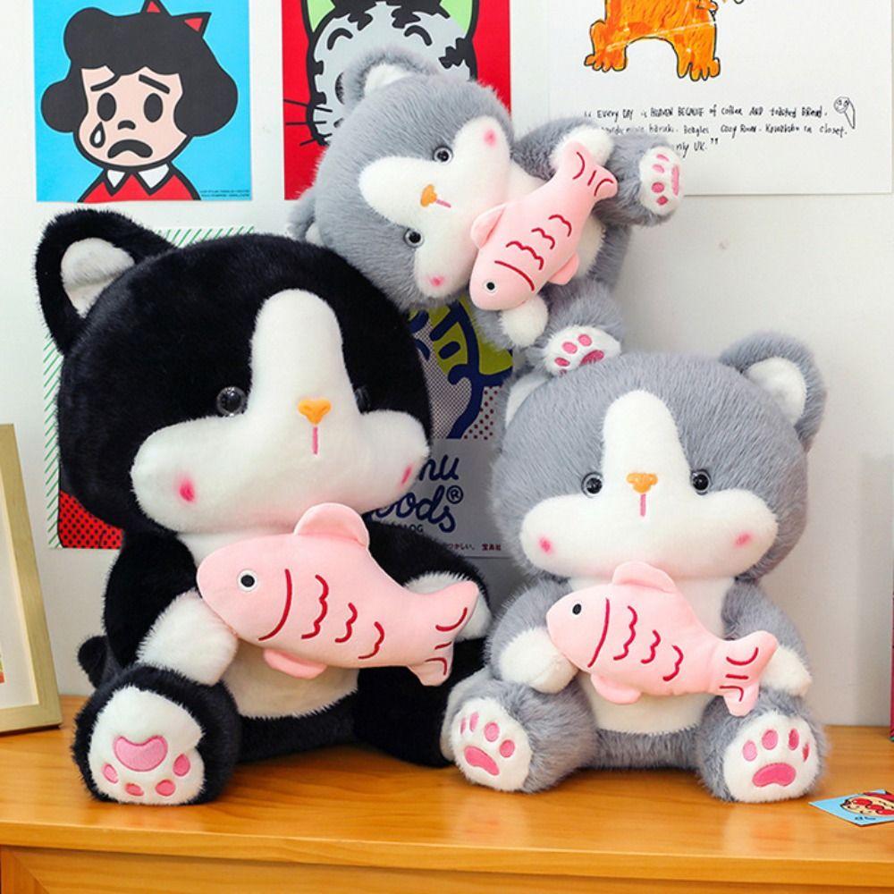 Fluffy Cartoon Plush Animal Doll Stuffed Doll Black Gray Kitty Dolls Cat Plush Toy Car Decor