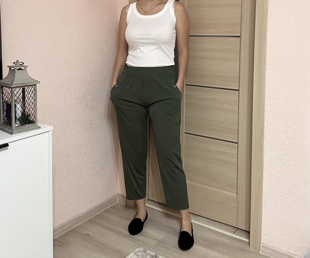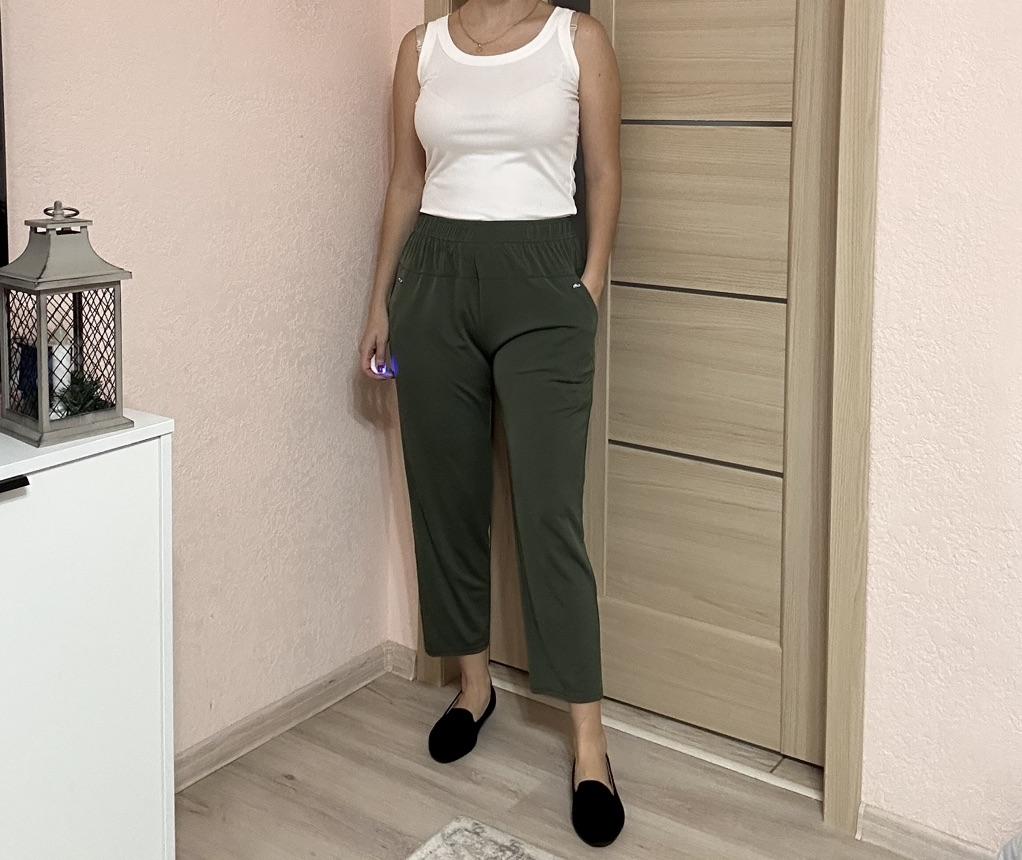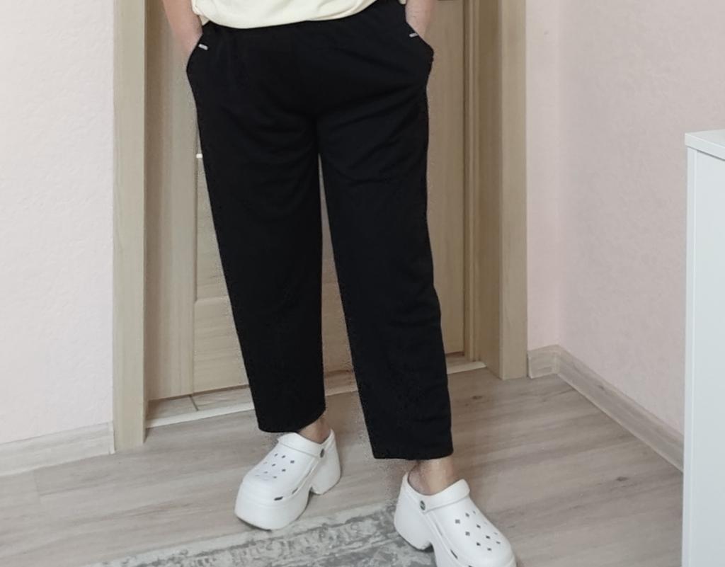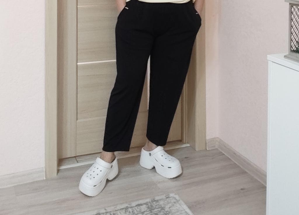 Укороченные брюки !😍 ✔️ Брюки с высокой посадкой, пояс на резинке, к низу брюки заужены с небольшим разрезом . ✔️ Брюки подойдут на теплую погоду . ✔️Материал полиэстер тянется не плохо. ✔️После деликатной стирки никаких изменений не было. ✔️ Размер ряд с XL по 8XL я заказала 6XL отлично подошли. ✔️ Размерная сетка соответствует описанию. ✔️У продавца в наличие широкий ассортимент цветов на выбор. ✔️ Отличные особенно за такую цену 🔥 ✈️Посылка шла около месяца до Молдовы, Кишинёв. ✔️Посылка была упаковано отлично. ✔️Нитки не торчат. ✔️Нет неприятного запаха. ✔️Дизайн интересный. ✔️Качество хорошее. 📌Я ростом 1,65 сm Мои параметры: ОГ - 110 см ОТ - 100 см ОБ - 115 см 💯Рекомендую товар и продавца!