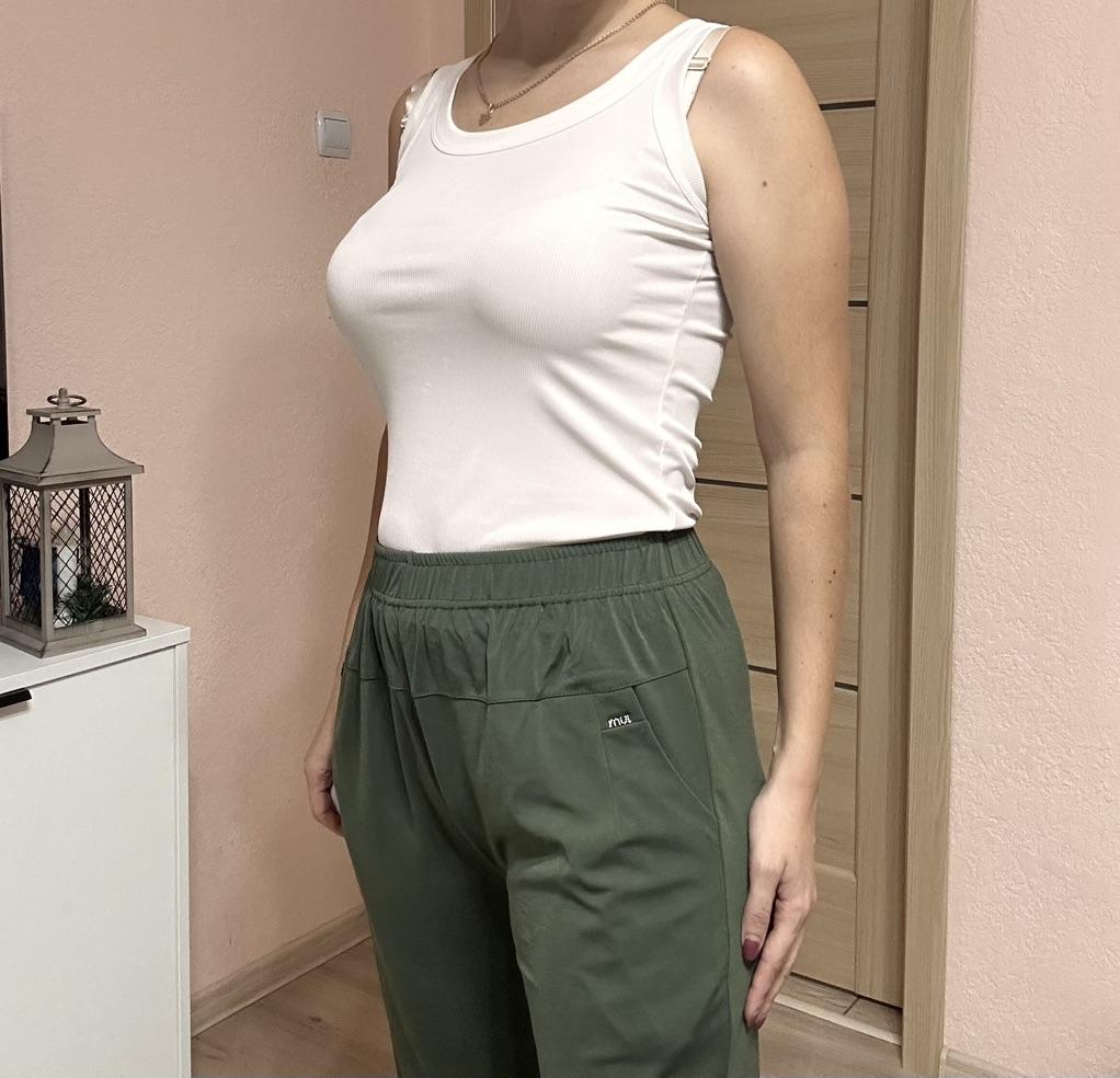 Приятные брючки, легкие и удобные 🩷 Я их буду носить дома и на отдыхе, ткань полиэстер, тянется, похожа на трикотаж, немного плотнее футболки. Верх на резинке, по бокам карманы, на рост 158 выше щиколотки. Цвет красивый бежевый, пошив аккуратный, фабричный. На параметры 75-99 и рост 158см размер 3xl сел хорошо. Мои замеры: от 62см, тянется до 82см Об 108см, длина брюк 91см. От души рекомендую 🧡