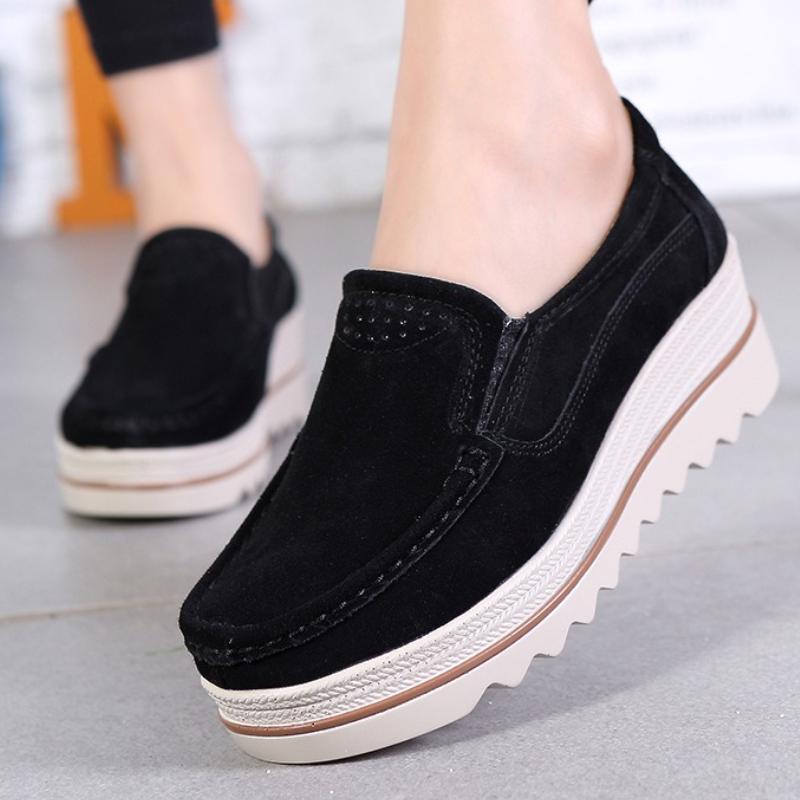 Женская обувь для ходьбы из коровьей замши, модная обувь на платформе, лоферы, мокасины на танкетке, слипоны, обувь для мамы