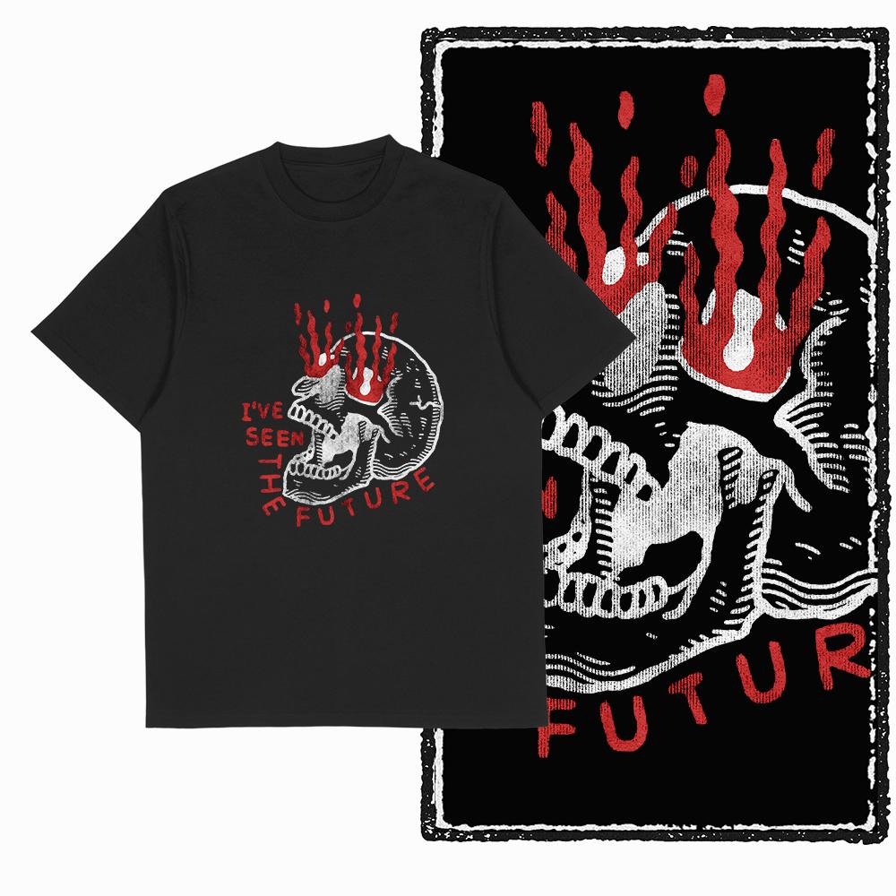 Летняя Классическая Ретро Огненный Череп Узор Хлопок Уличный Принт Дышащая и Свободная Мужская Футболка с Коротким Рукавом и Круглым Вырезом