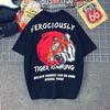 Японская футболка с принтом головы тигра, в японском ретро-хип-хоп стиле, с принтом тигра, большого размера, хлопковая, локомотивная, с коротким рукавом, для мужчин и женщин