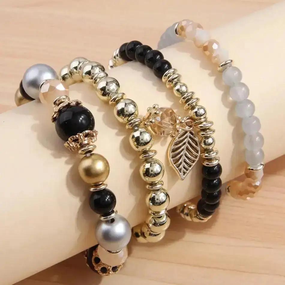 4 шт. Модный и простой кулон из хрустальных бусин с ветвями и листьями, универсальный многослойный браслет с темпераментом для женщин