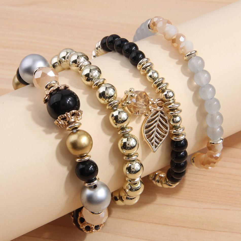 4 шт. Модный и простой кулон из хрустальных бусин с ветвями и листьями, универсальный многослойный браслет с бусинами, демонстрирующий темперамент женщины. — купить товар онлайн с бесплатной доставкой по всему миру!