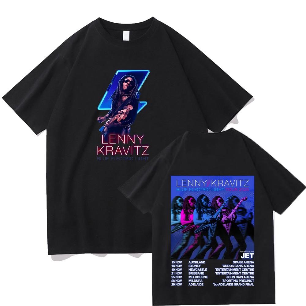 Футболка Lenny Kravitz Футболка Lenny Kravitz Blue Electric Light Tour 2025 Топ Хлопок Короткий Рукав Футболка Рок Женская/Мужская Оверсайз Уличная Одежда