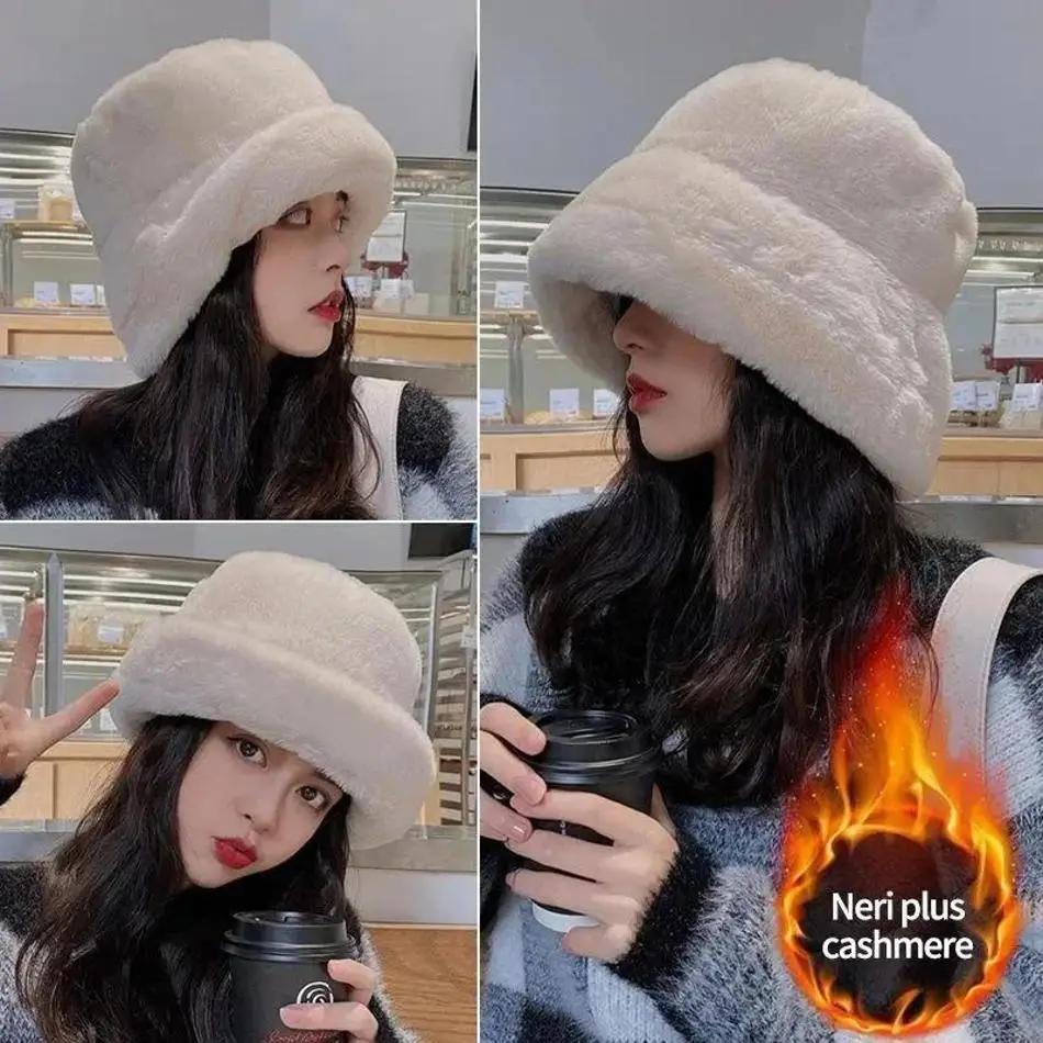 1 шт. Новая меховая шляпа рыбака Корейская версия Модная универсальная шляпа-ведро Шляпа для женщин на зиму Теплая имитация норки