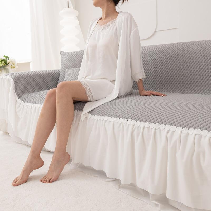 Прохладный чехол на диван из ледяного шелка Летний Летний коврик-юбка Чехол на диван Чехол на диван Серый Нескользящий Легкая роскошь