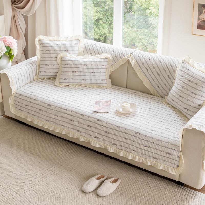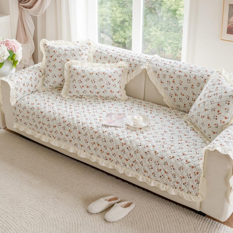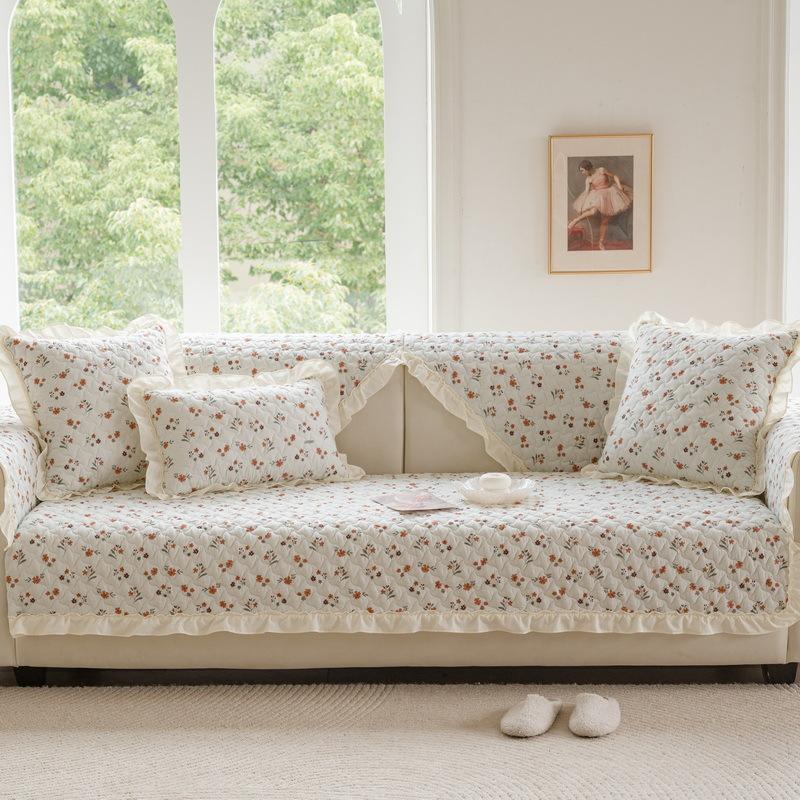 Французская пасторальная подушка для дивана из чистого хлопка, универсальная для четырех сезонов, новая нескользящая накидка-полотенце на подушку сиденья прямого дивана