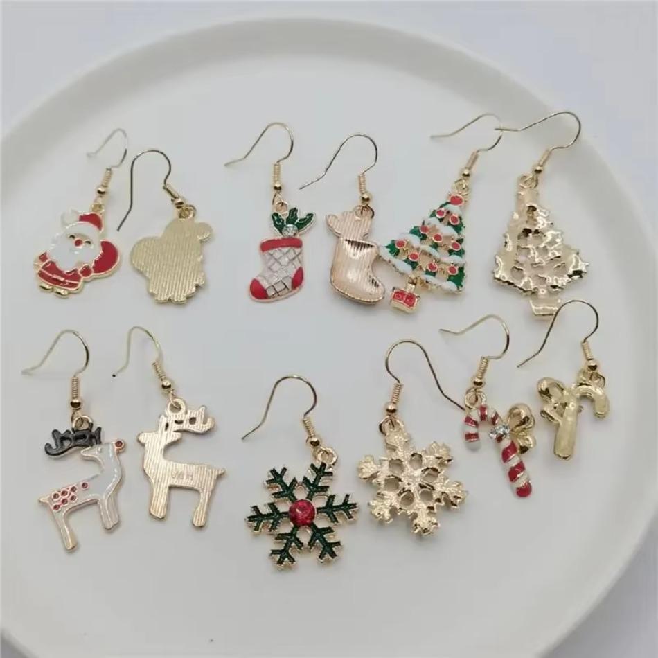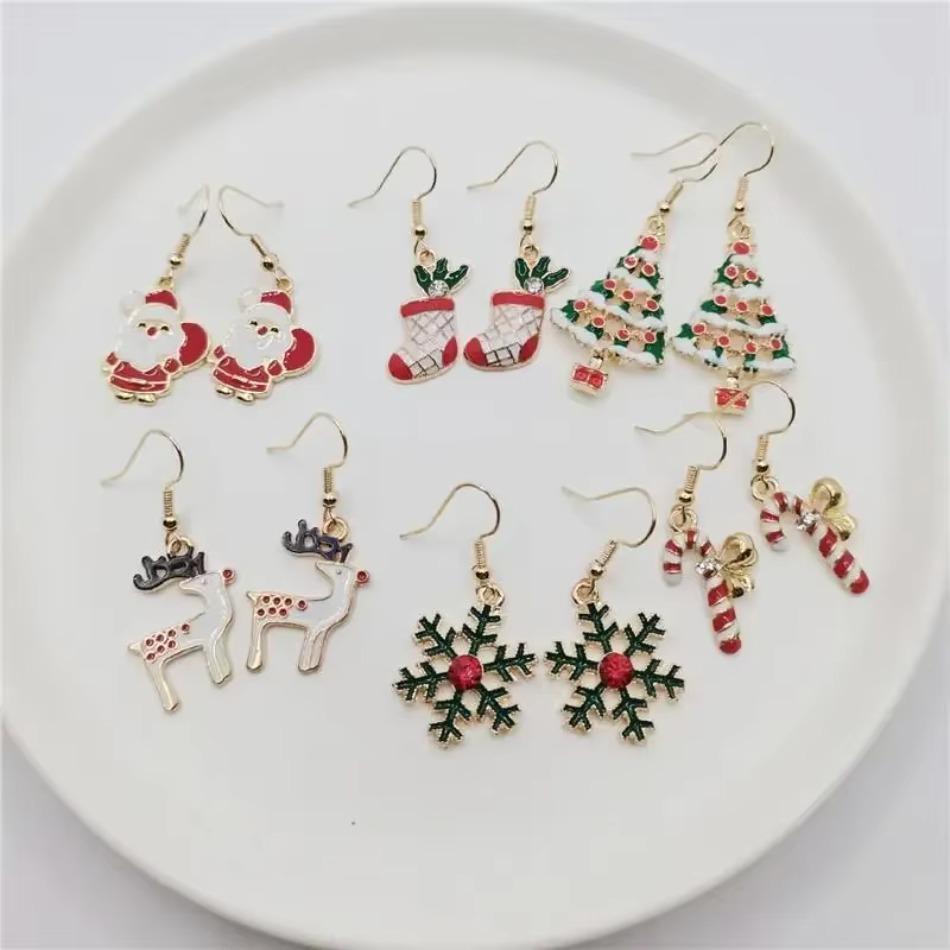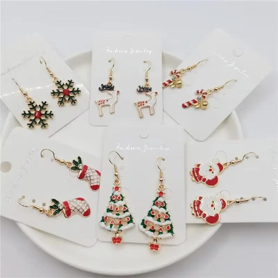 Рождественская елка Венок Костыль Подарочная коробка Дед Мороз Снеговик Олень Серьги Женские Длинные Кисточки Круг Аксессуары Креативные подарки