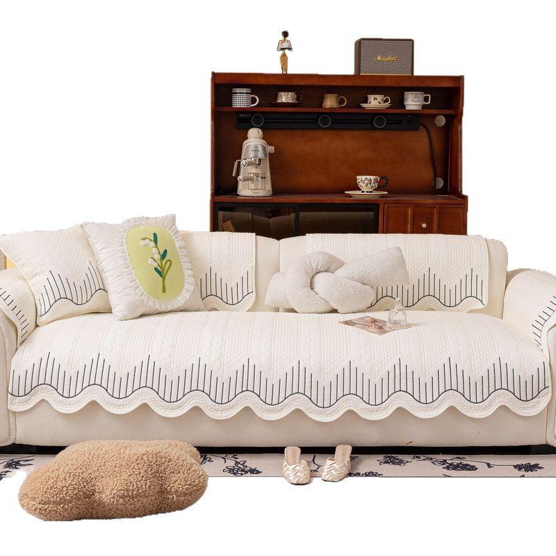 Пасторальная ткань для диванных подушек из стираного хлопка универсальна для всех сезонов. Новая ткань для чехла на подушку сиденья из чистого хлопка, нескользящая, кремовый ветер.