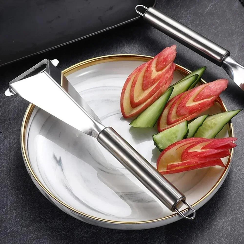 1 шт. Новый нож для карвинга по фруктам из нержавеющей стали, треугольной формы, нож для овощей, слайсер, лезвия с антискользящим покрытием, кухонные аксессуары