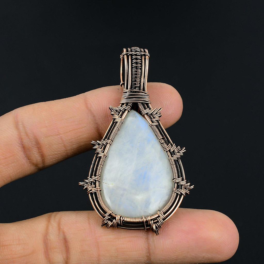 Кулон из лунного камня, обернутый медной проволокой 999 пробы, кулон из драгоценного камня ручной работы, подарок для мамы, антикварное украшение