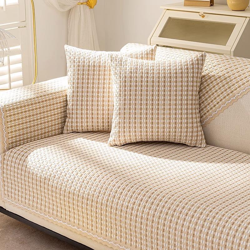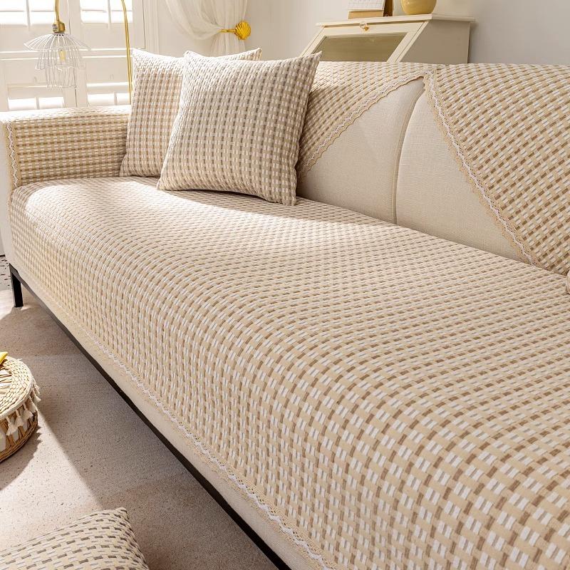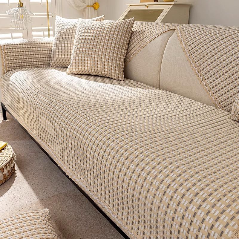 Хлопковая и льняная подушка для дивана, универсальная для всех сезонов, льняная подушка для сиденья с противоскользящим покрытием, простой и современный чехол-полотенце для дивана из старой грубой ткани