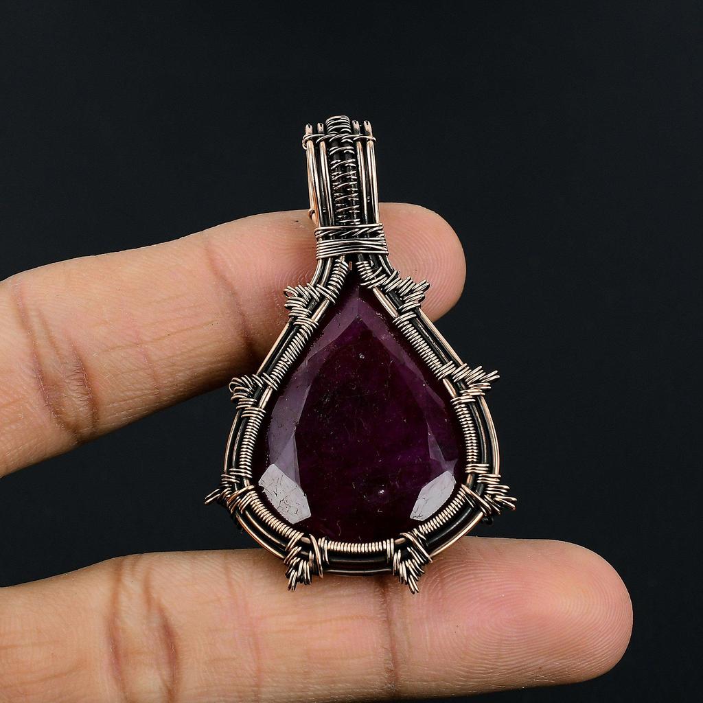 Рубиновый кулон Ювелирные изделия из драгоценных камней, Кулон ручной работы, обернутый медной проволокой 999 пробы, Ювелирные изделия новейшего дизайна