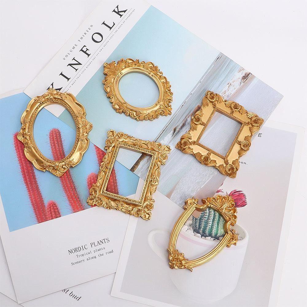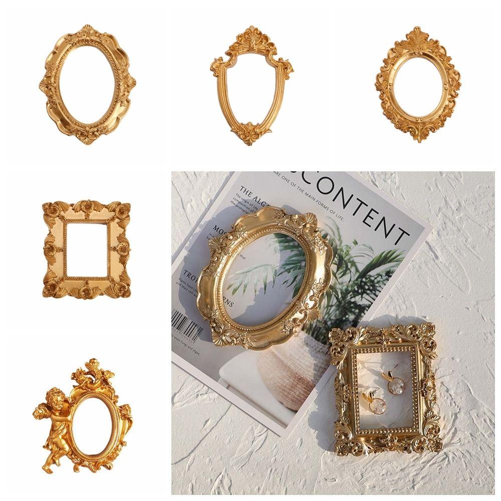 Handmade European Wooden Frame DIY Display Stand Ornaments Golden Photo Frame Jewelry Decor