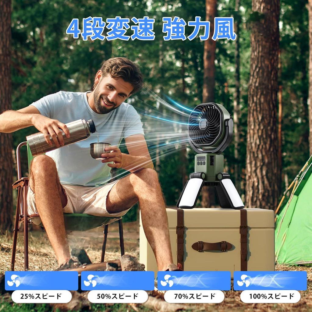 [4 уровня скорости ветра x 3 режима диммирования] Точно регулируйте скорость ветра от слабого (1,5 м/с) К сильному (4,8 м/с). Осветительные приборы: Чтение (300 люкс), Расслабление (150 люкс), Ночной свет (50 люкс). Режим энергосбережения снижает потребление энергии на 40%. Этот вентилятор для кемпинга имеет 4 настройки скорости ветра, позволяющие выбрать оптимальную скорость при каждом нажатии переключателя скорости ветра.. Он может работать непрерывно в течение сверхдлинных 20 часов, позволяя вам с комфортом наслаждаться мероприятиями в течение всего дня. Если вы страдаете от теплового удара, лихорадки или солнечного ожога, вы можете использовать этот солнечный вентилятор для снижения температуры тела.