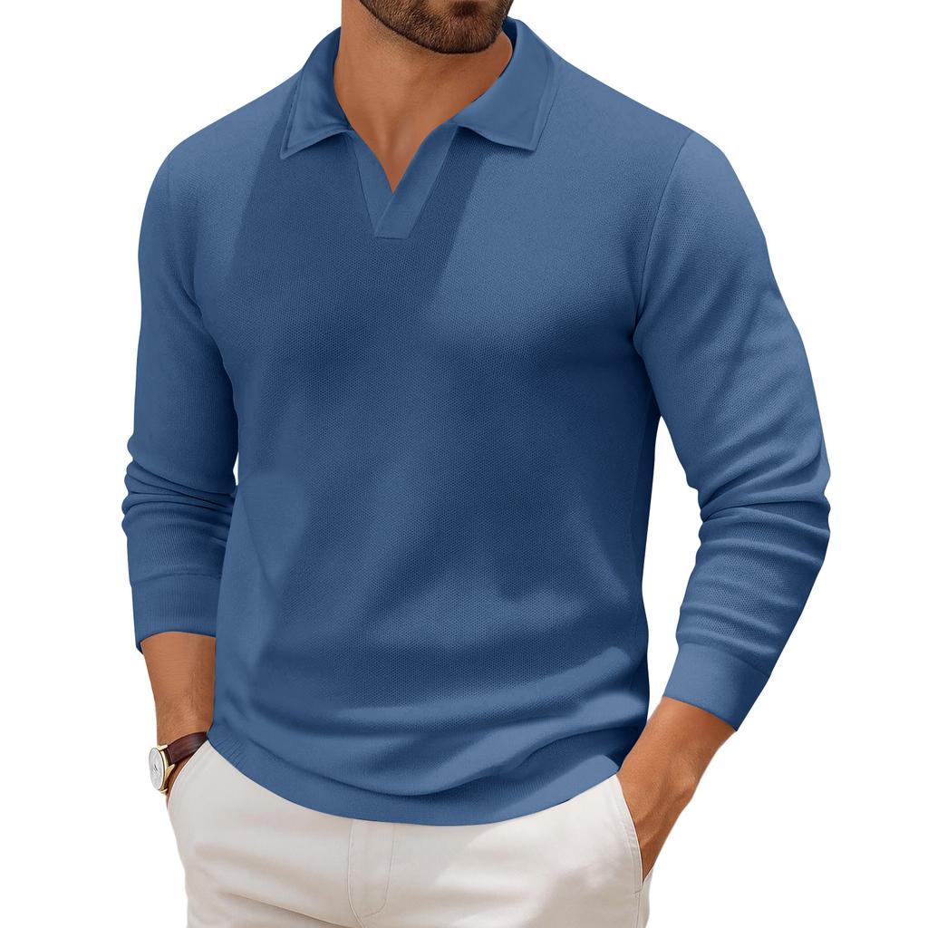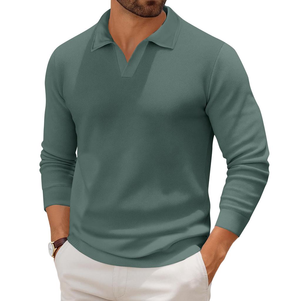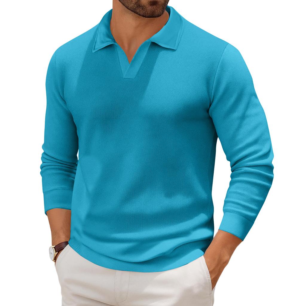 Мужской повседневный трикотажный базовый топ с длинным рукавом и воротником