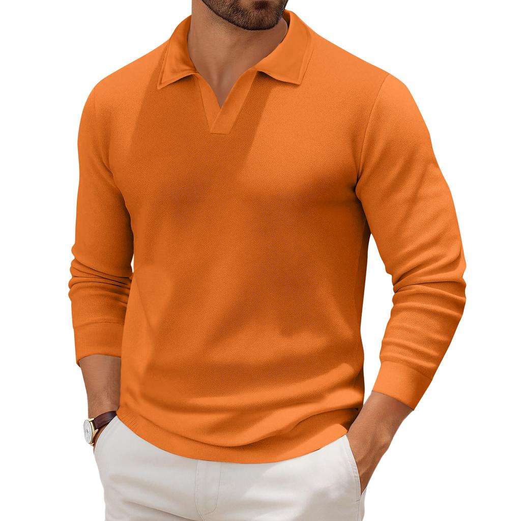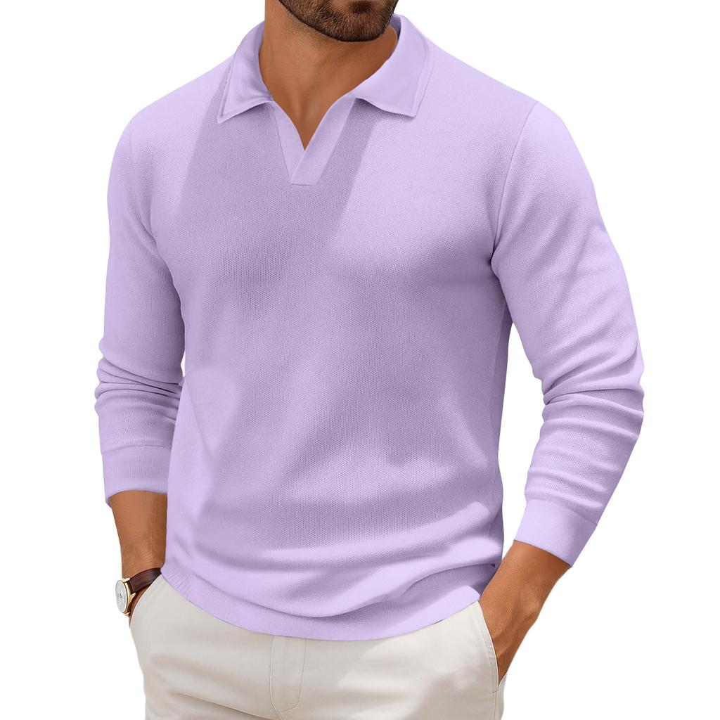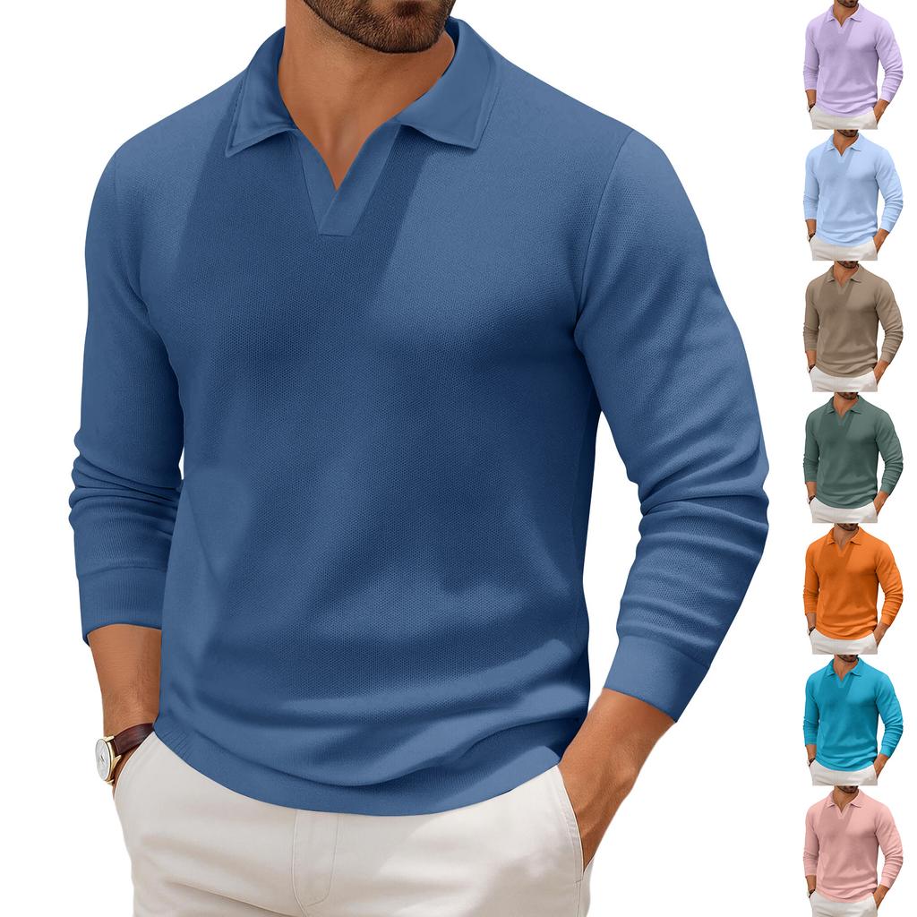 Мужской повседневный трикотажный базовый топ с длинным рукавом и воротником
