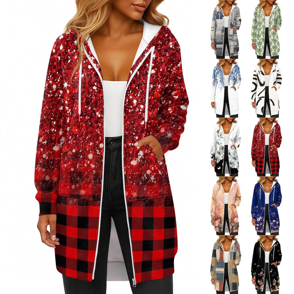 Женская модная толстовка с длинными рукавами, принтом, капюшоном на кулиске, карманом на молнии, длинная, повседневная — купить товар онлайн с бесплатной доставкой по всему миру!