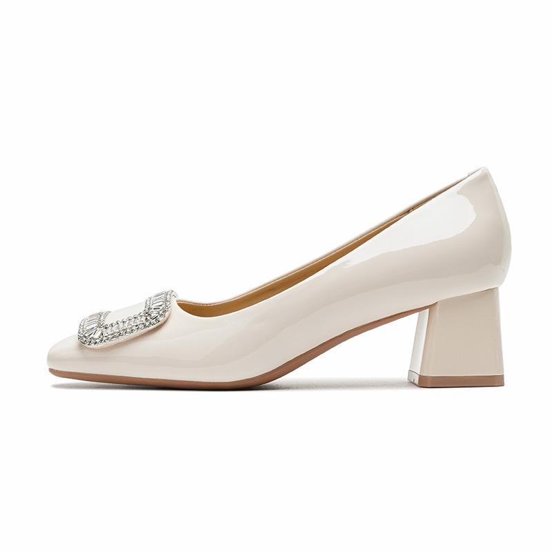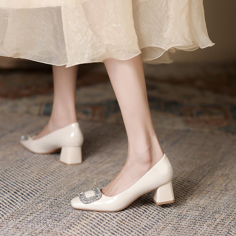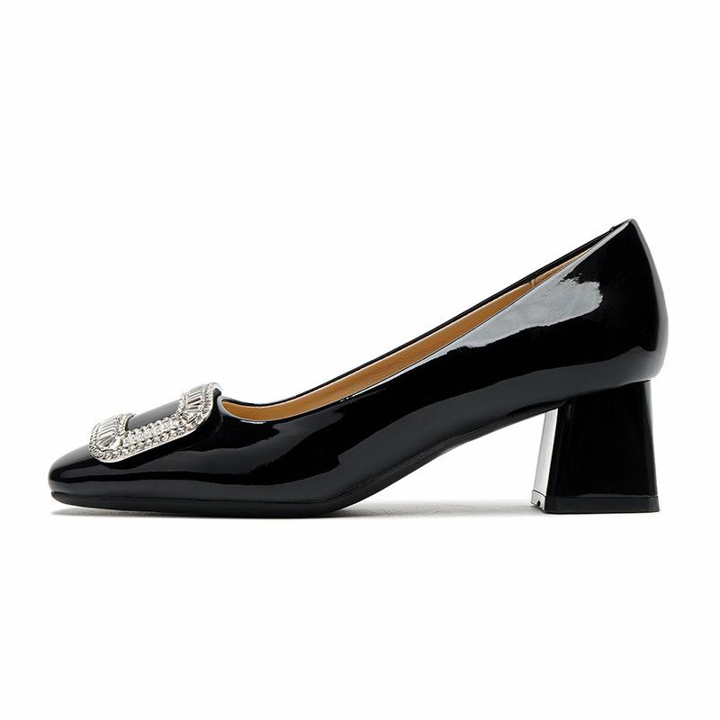 8-Туфли Мэри Джейн женские из лакированной кожи с квадратной пряжкой со стразами на среднем каблуке женские туфли-лодочки на толстом каблуке осенние