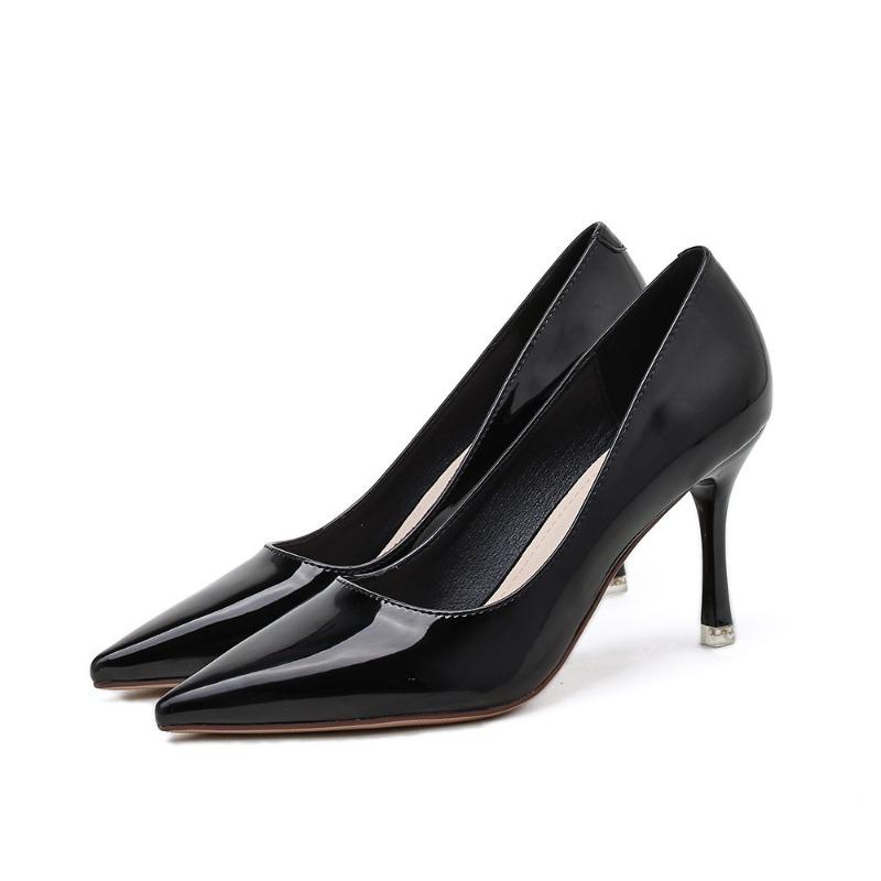 20 мелкие лакированные туфли на тонком каблуке черные туфли-лодочки женская обувь остроносые однотонные дизайн универсальные