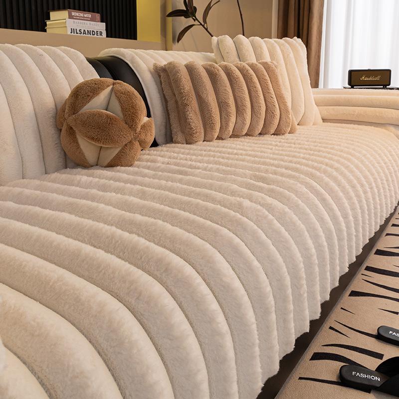 Зимний чехол на диван Новый утолщенный нескользящий чехол на сиденье кремового цвета Ветрозащитный чехол высокого качества Подушка для дивана из кроличьего плюша — купить товар онлайн с бесплатной доставкой по всему миру!