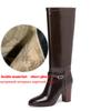 Krazing Pot Кожа спилок коровы Круглый носок Толстый высокий каблук Рыцарские сапоги Размер 46 Размер 45 Слипоны Большой размер Женские Металлическая пряжка Ботфорты