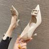 7-1 женские туфли-одинарки на осень и зиму, наступающие на каблук, квадратная пряжка, острый тонкий каблук, мягкая кожа, туфли на высоком каблуке 7,55,5 см, толстый каблук