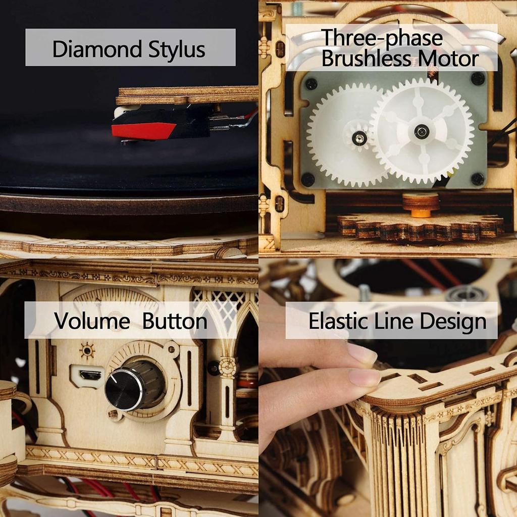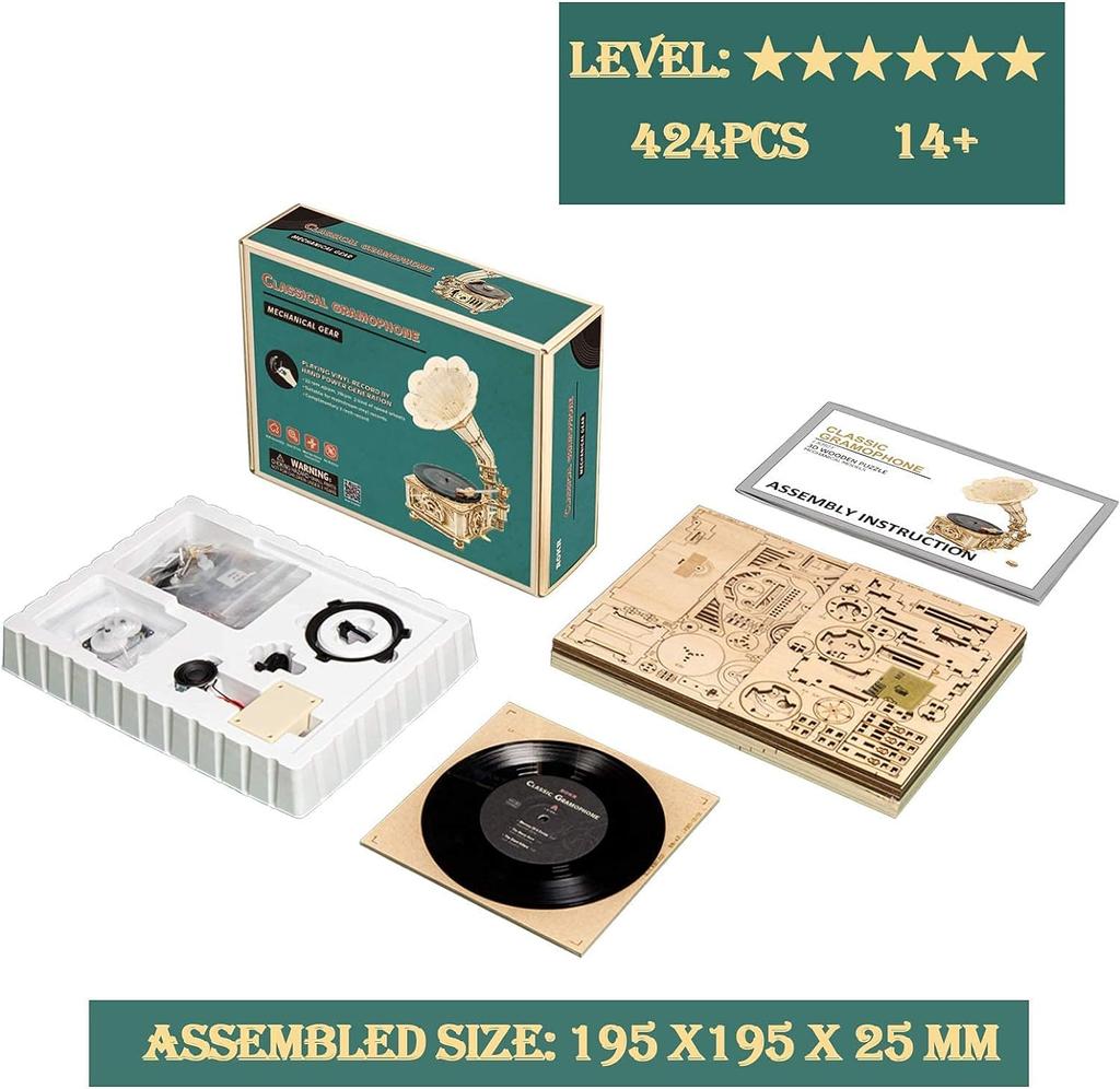 Robotime Rokr Сделай сам Ручная Ретро Декорация Ручка Классический Граммофон 3D Деревянный Пазл Строительные Наборы Игрушка Подарок для Взрослых Подростков LKB01D