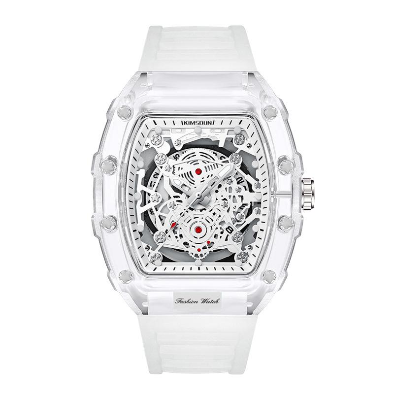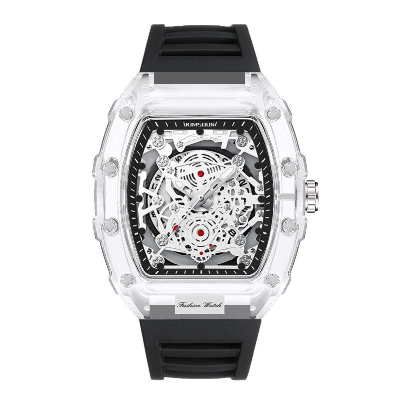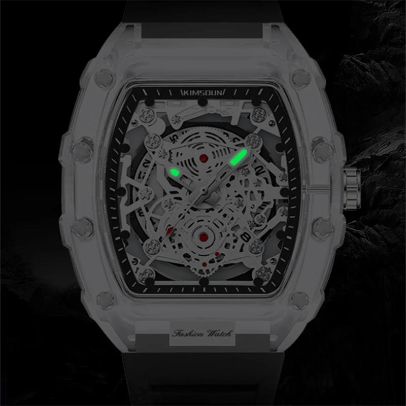 Модные Повседневные Мужские Часы Светящиеся Функция Календаря Силиконовый Ремешок Корпус Бочкообразной Формы Прозрачный Мужские Кварцевые Часы Reloj