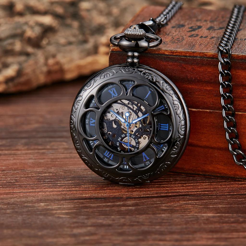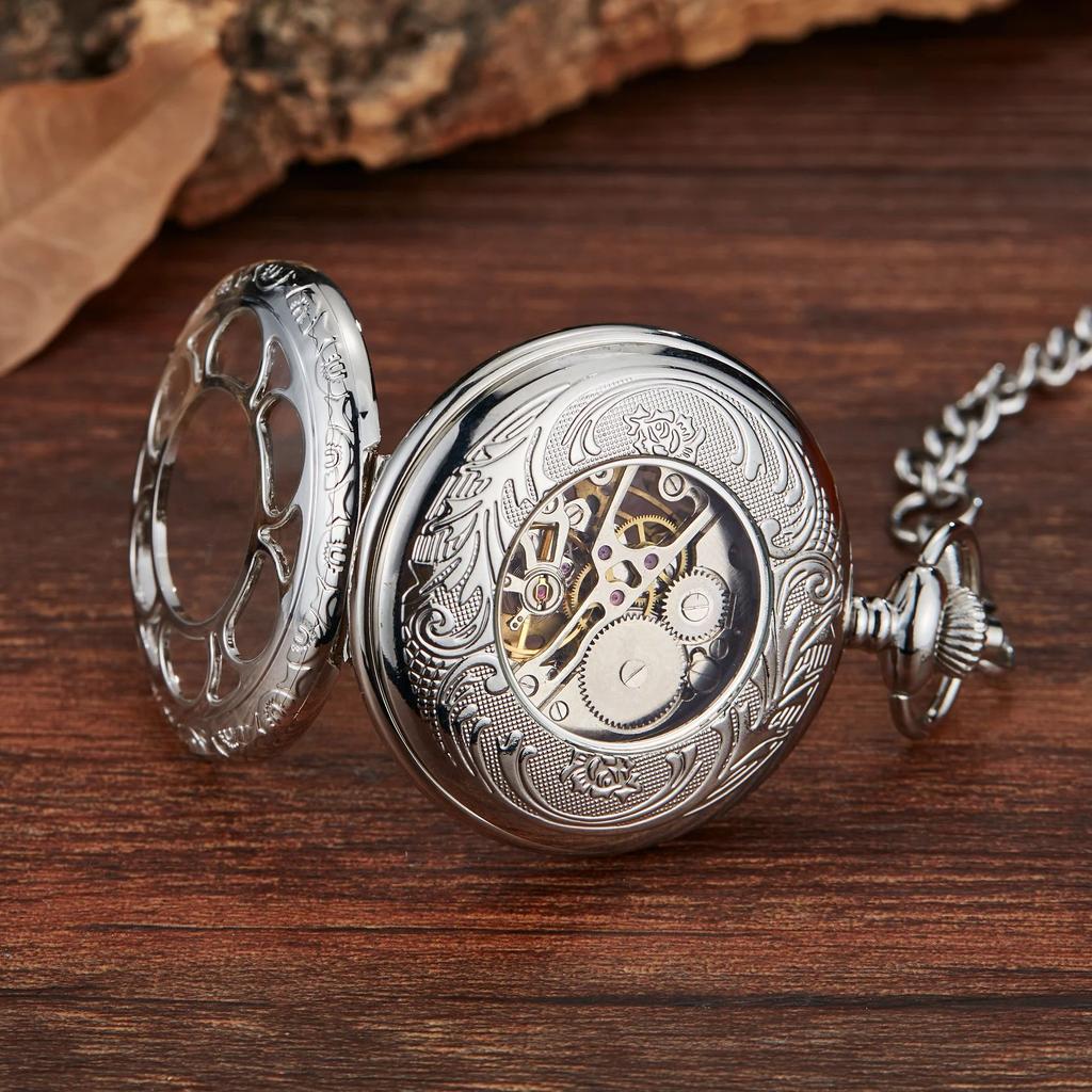 Ретро классические механические карманные часы светящиеся лепестки ажурная откидная крышка ручной завод мужские женские механические карманные часы