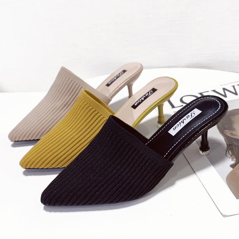 20 Новые тапочки женская мода плетеные ретро полутапочки острый носок сумка голова высокий каблук шпилька