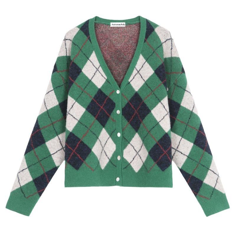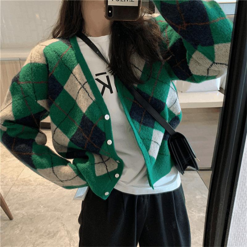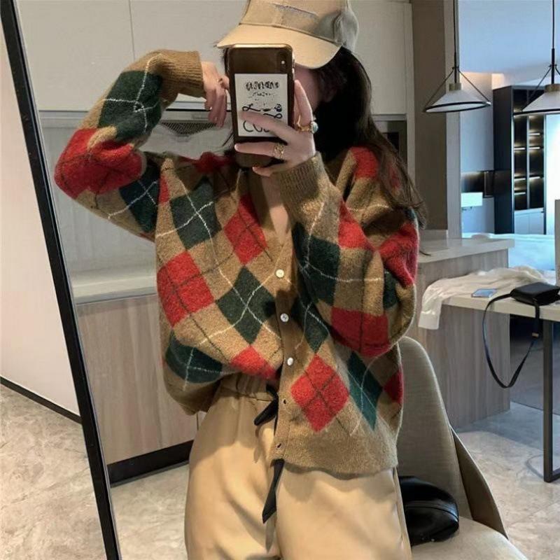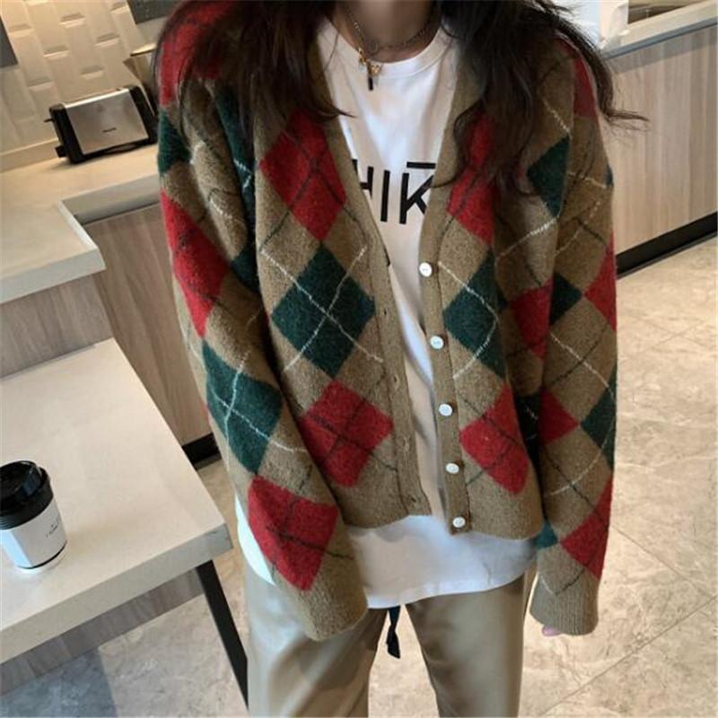 Студенческий свитер с V-образным вырезом, пальто: Женская ретро верхняя одежда ромбовидной вязки, приталенного силуэта, для весны, осени, зимы