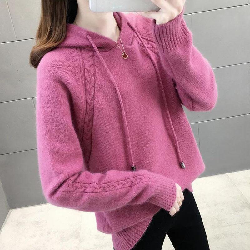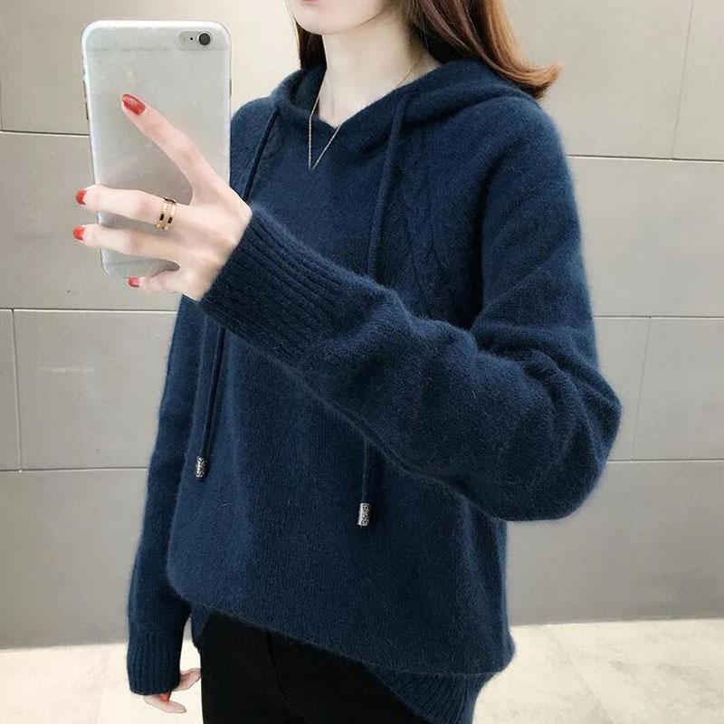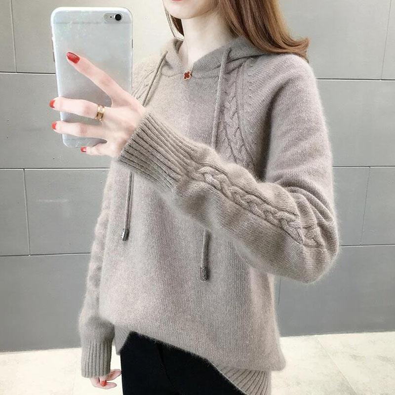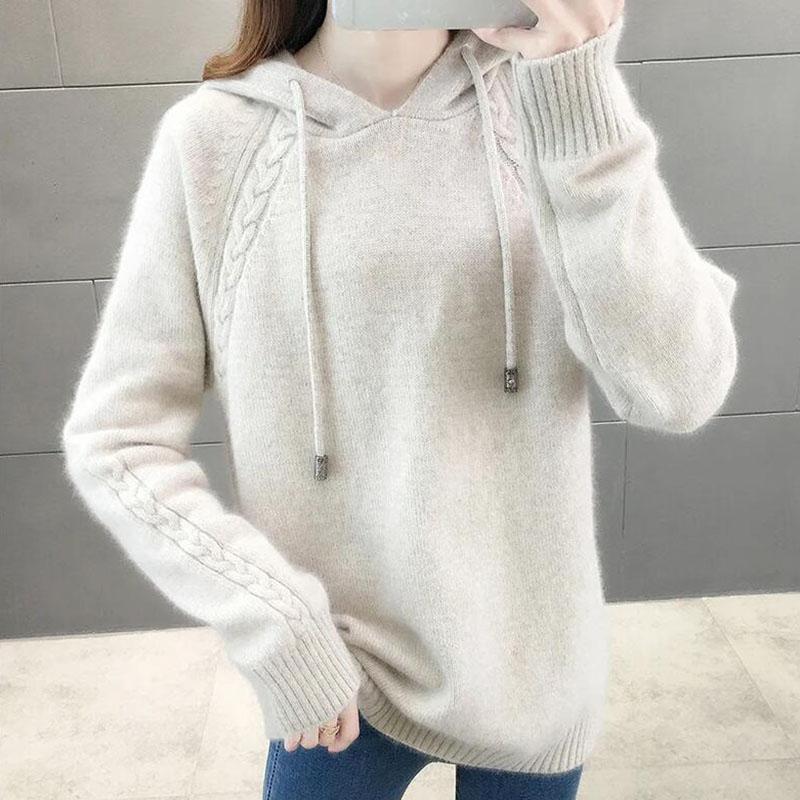 Осень и Зима Худи Свободная Верхняя Одежда Ленивый Стиль Пуловер С Длинным Рукавом Вязаный Свитер