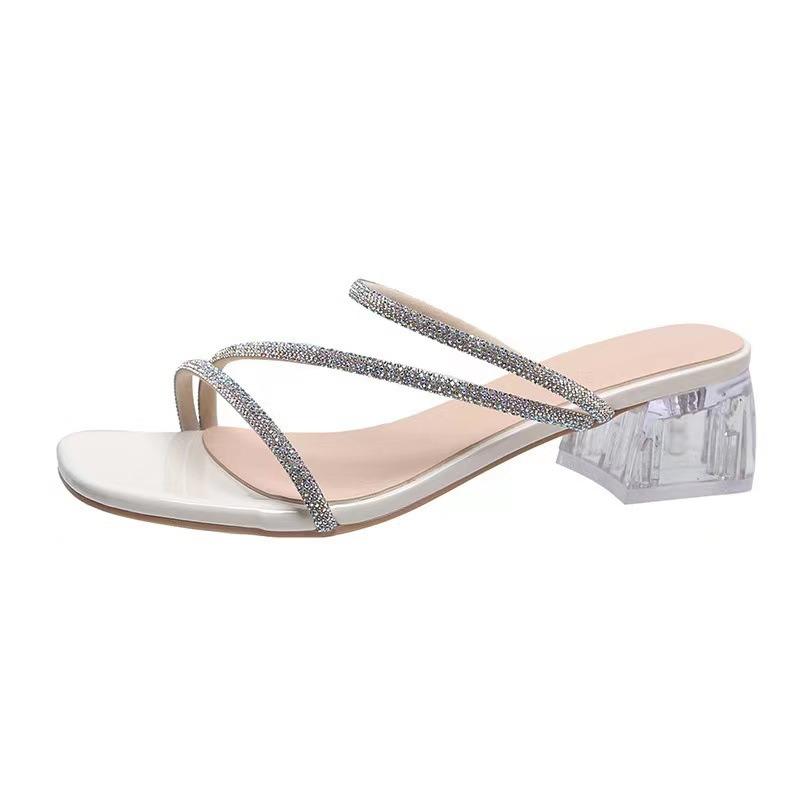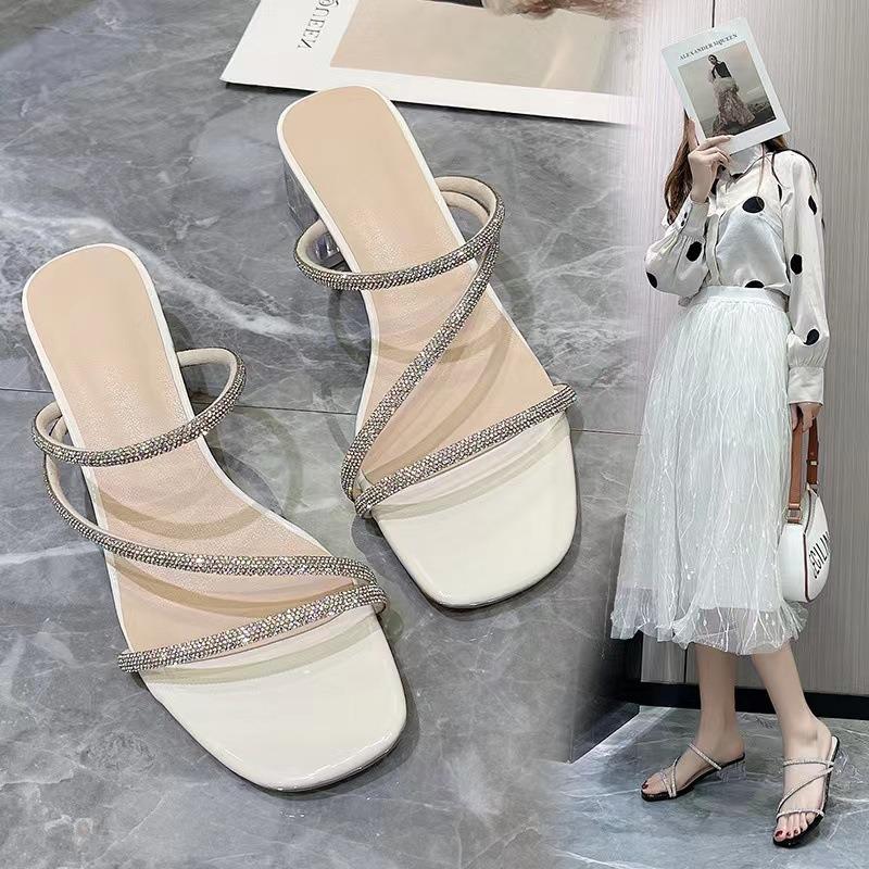 Крутые шлепанцы на высоком каблуке, фея, летние, фея, стразы, средний каблук, с одним словом, модные шлепанцы, корейская версия, новые