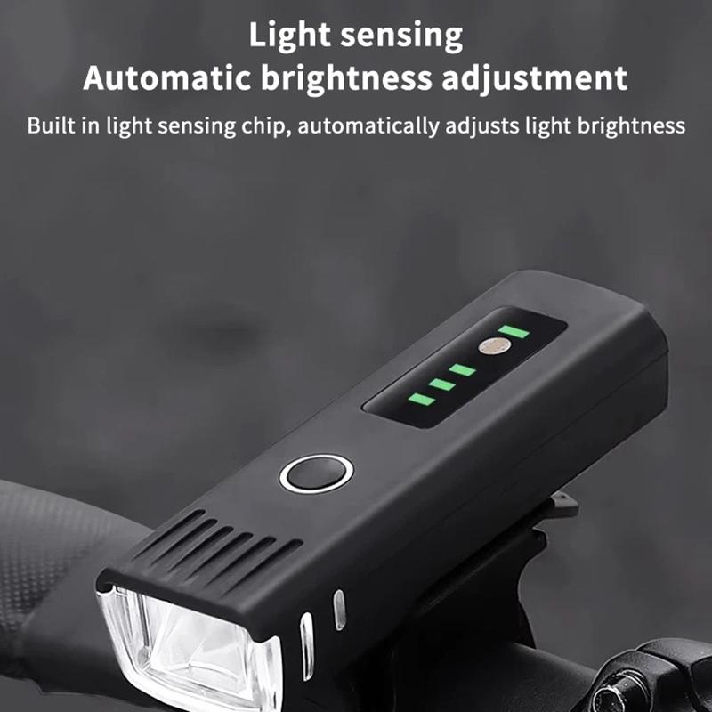 1,Универсальные велосипедные фары с интеллектуальным сенсорным управлением:Перезаряжаемая через USB передняя и задняя велосипедные фары оснащены переключателем в одно касание с четырьмя различными режимами освещения в зависимости от ваших предпочтений. Передняя фара включает режим интеллектуального обнаружения, яркий свет, тусклый свет, режим вспышки. Датчик может определять окружающий свет. При ярком освещении фары приглушаются.. Когда окружающая среда темнее, фары автомобиля будут ярче.