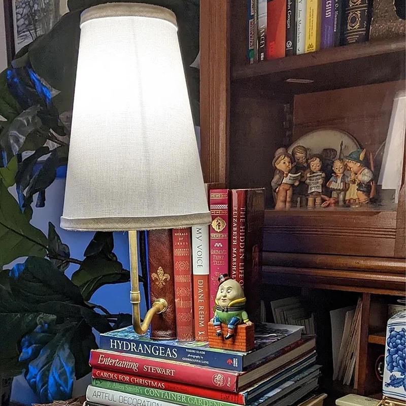 Классическая литературная лампа. Настольная лампа в стиле книги. Настольная лампа в стиле книги с абажуром из льна. Уникальная декоративная лампа.