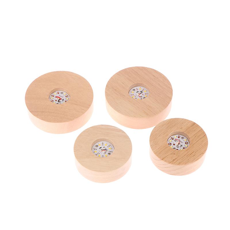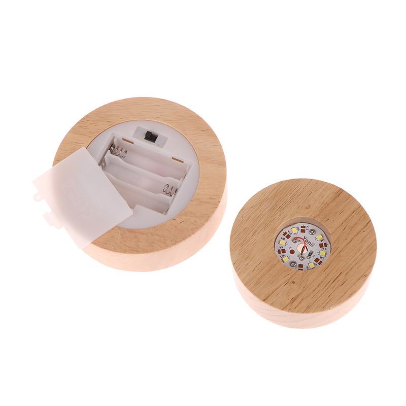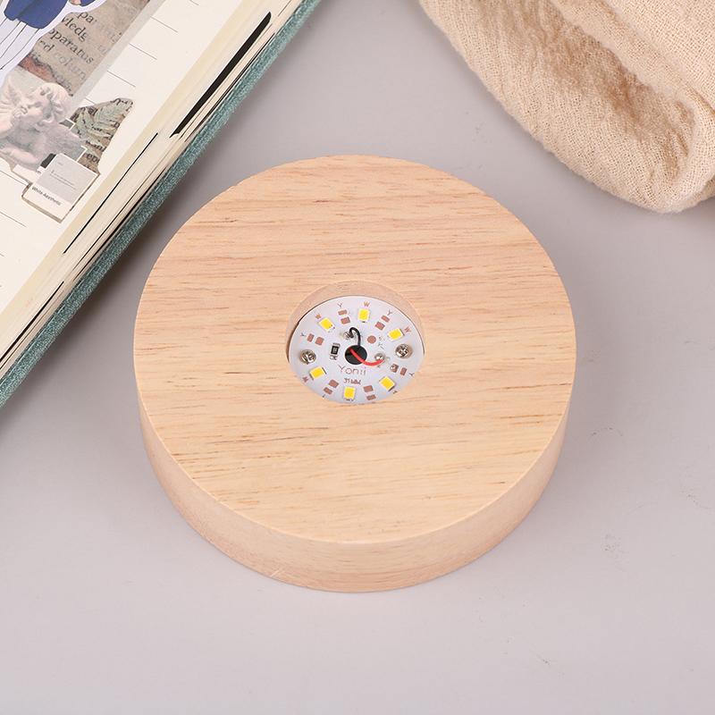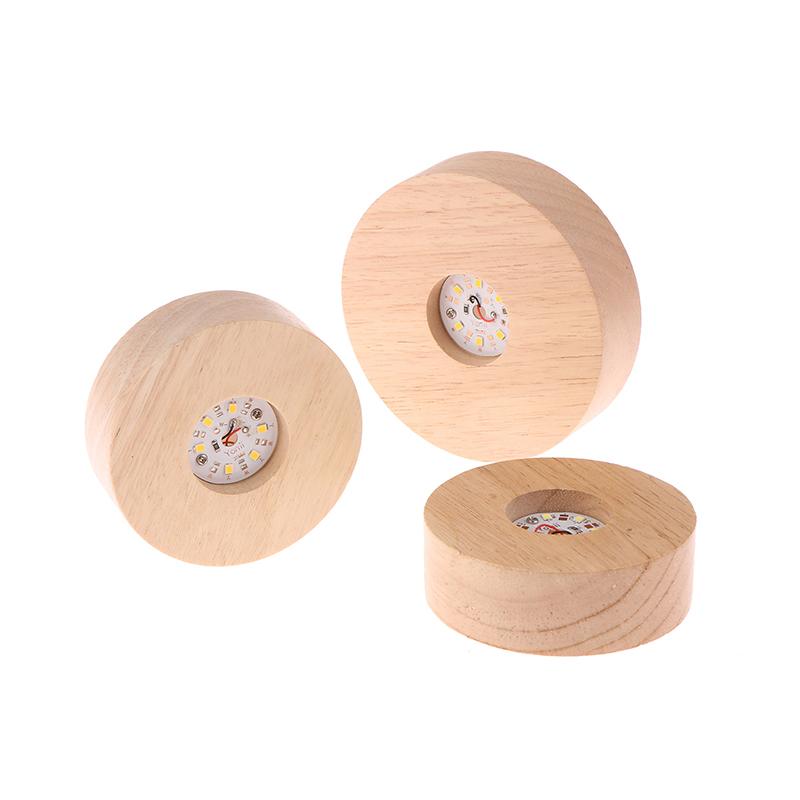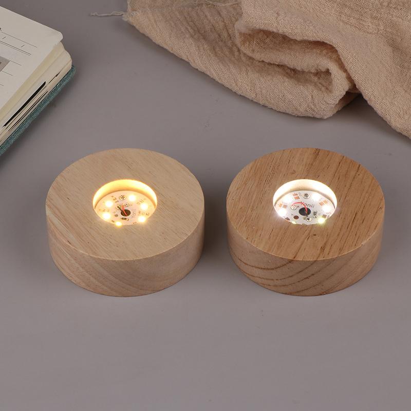 Круглая деревянная светодиодная подставка-дисплей 8/10 см на батарейках, держатель, настольная ночная лампа, основа для стеклянных художественных украшений