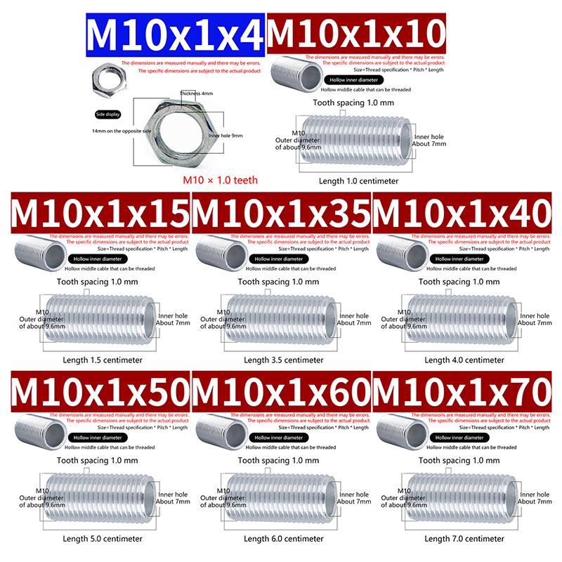 10 шт. M10 трубка для зубчатой лампы металлическая полая резьбовая трубка винт гайка колпачок лампы оцинкованная люстра соединительный стержень фиксированное основание