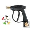 Эргономичная рукоятка оснащена предохранительной пряжкой для повышения безопасности работы и предотвращения несчастных случаев. Его уникальный дизайн предлагает многофункциональные возможности подачи воды под высоким давлением, что делает задачи по уборке более быстрыми и эффективными.