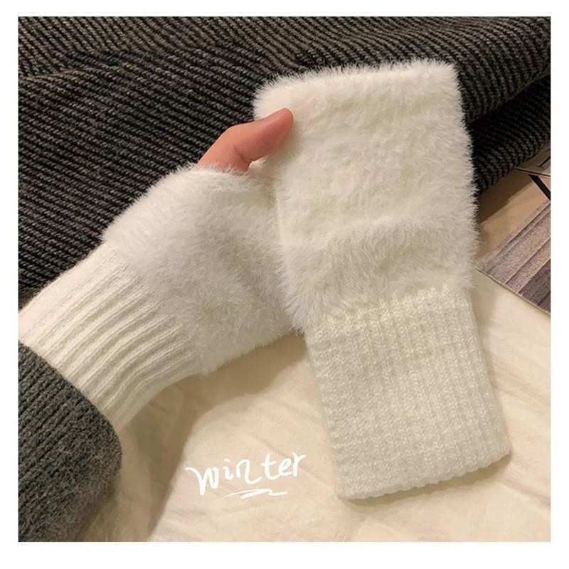 Мягкие зимние перчатки с половиной пальцев женские теплые роскошные однотонные белые плюшевые вязаные перчатки без пальцев варежки для письма — купить товар онлайн с бесплатной доставкой по всему миру!