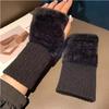 Мягкие зимние перчатки с половиной пальцев женские теплые роскошные однотонные белые плюшевые вязаные перчатки без пальцев варежки для письма