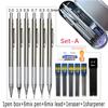 Набор металлических механических карандашей с пеналом, грифелями, ластиком, точилкой, набор 0.3 0.5 0.7 0.9 1.3 2.0 мм, автоматический карандаш для рисования и эскизов