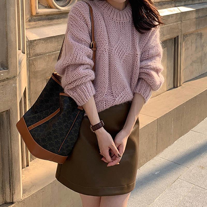Осенне-зимний вязаный свитер для женщин, ленивый стиль, эластичный, с перекрутами, винтажный, однотонный, с круглым вырезом, джемпер